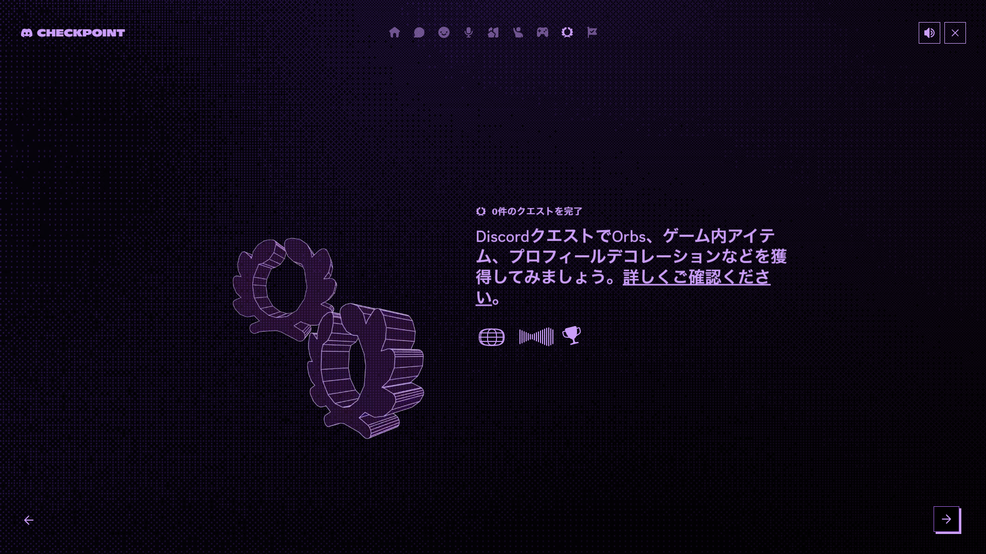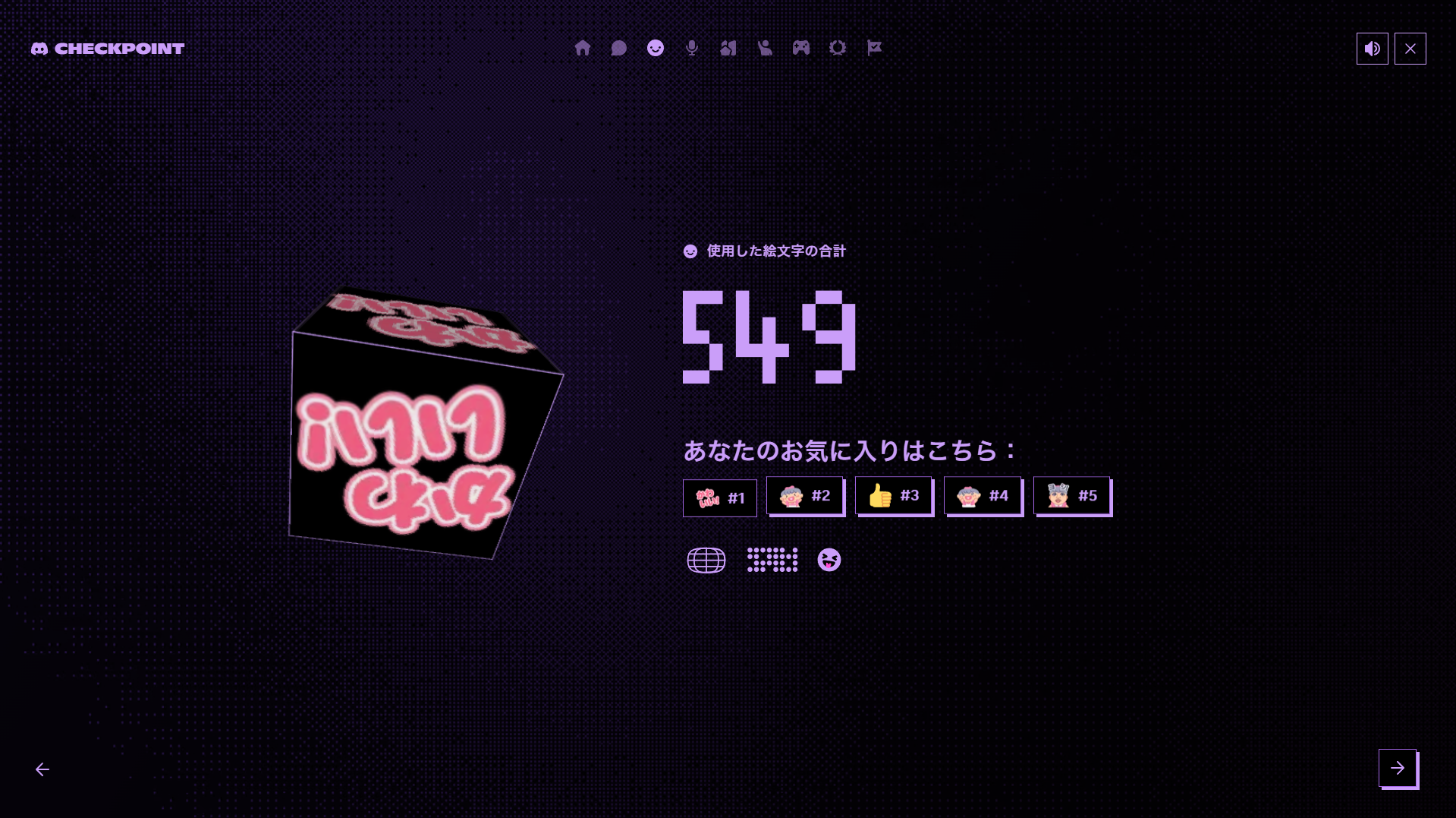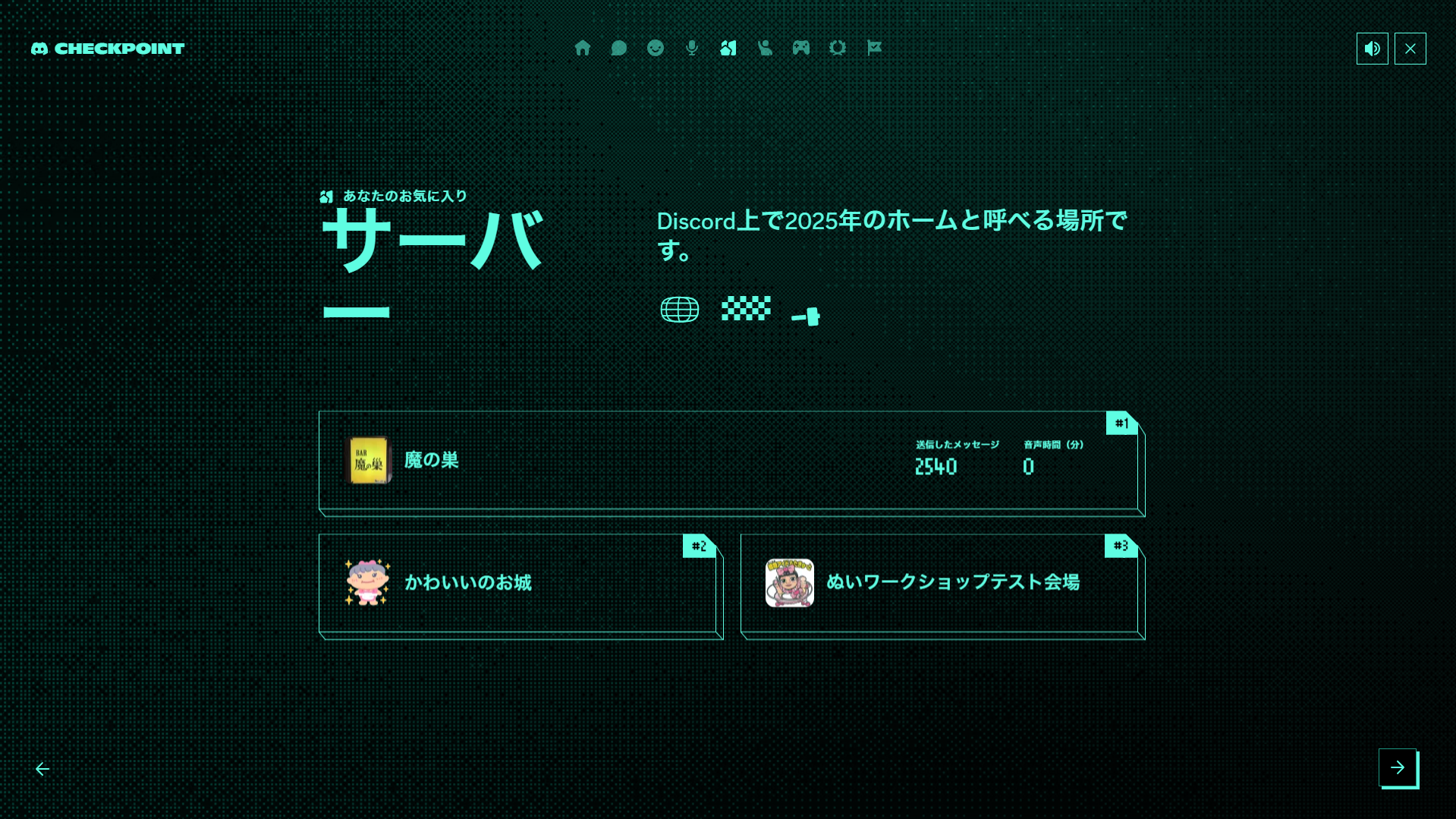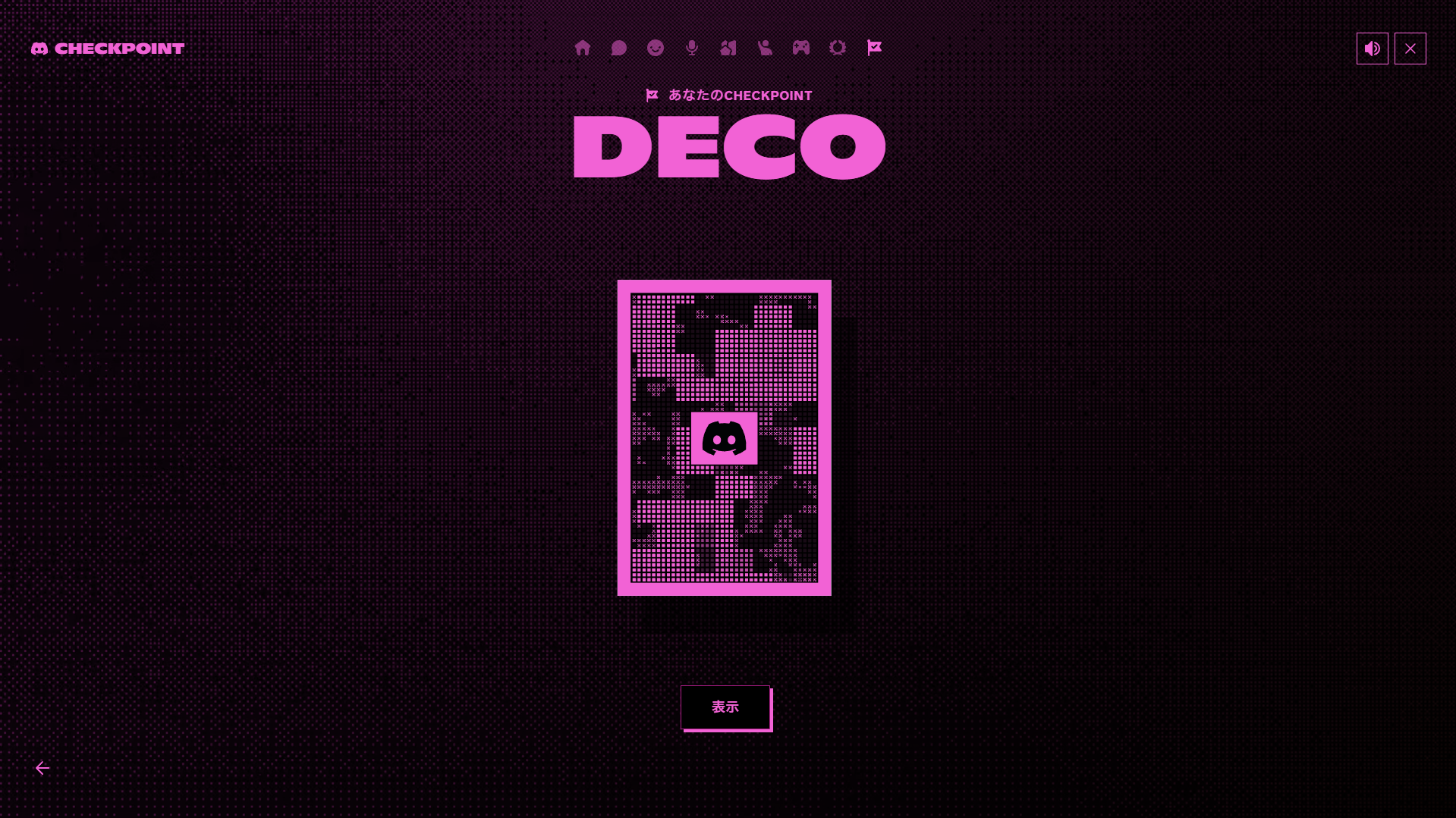 - TOPとは違って、アイコンの各要素は変わってはいるけど四隅配置は変わらず、左上のアイコンは「CHECKPOINT」のアイコンに変わってる