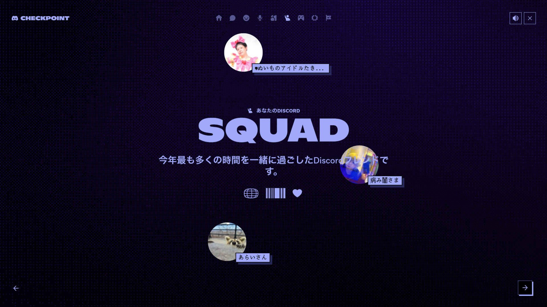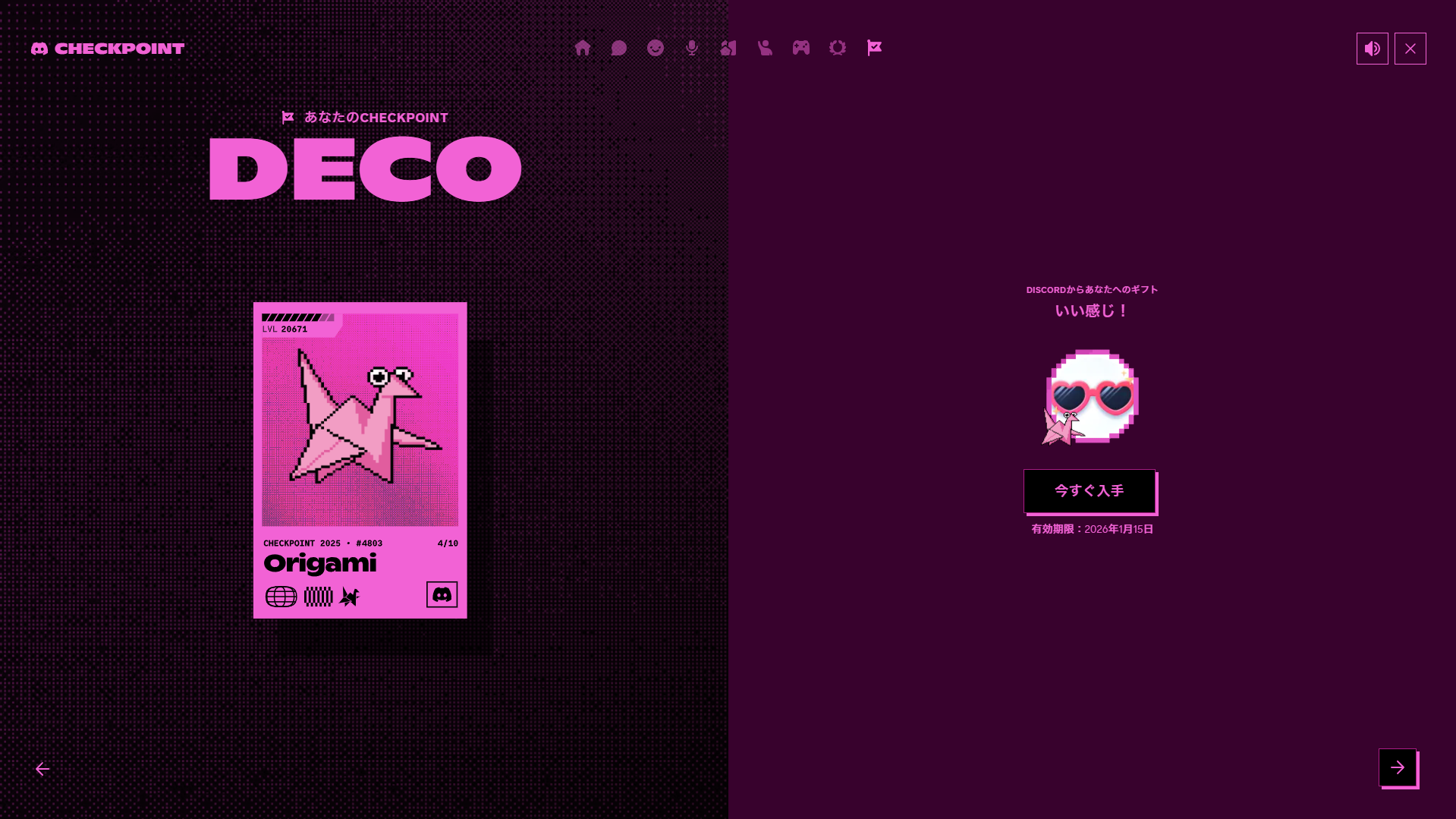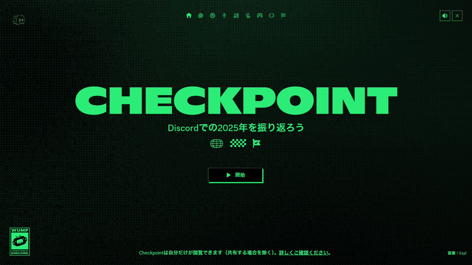 - TOPとは違って、アイコンの各要素は変わってはいるけど四隅配置は変わらず、左上のアイコンは「CHECKPOINT」のアイコンに変わってる