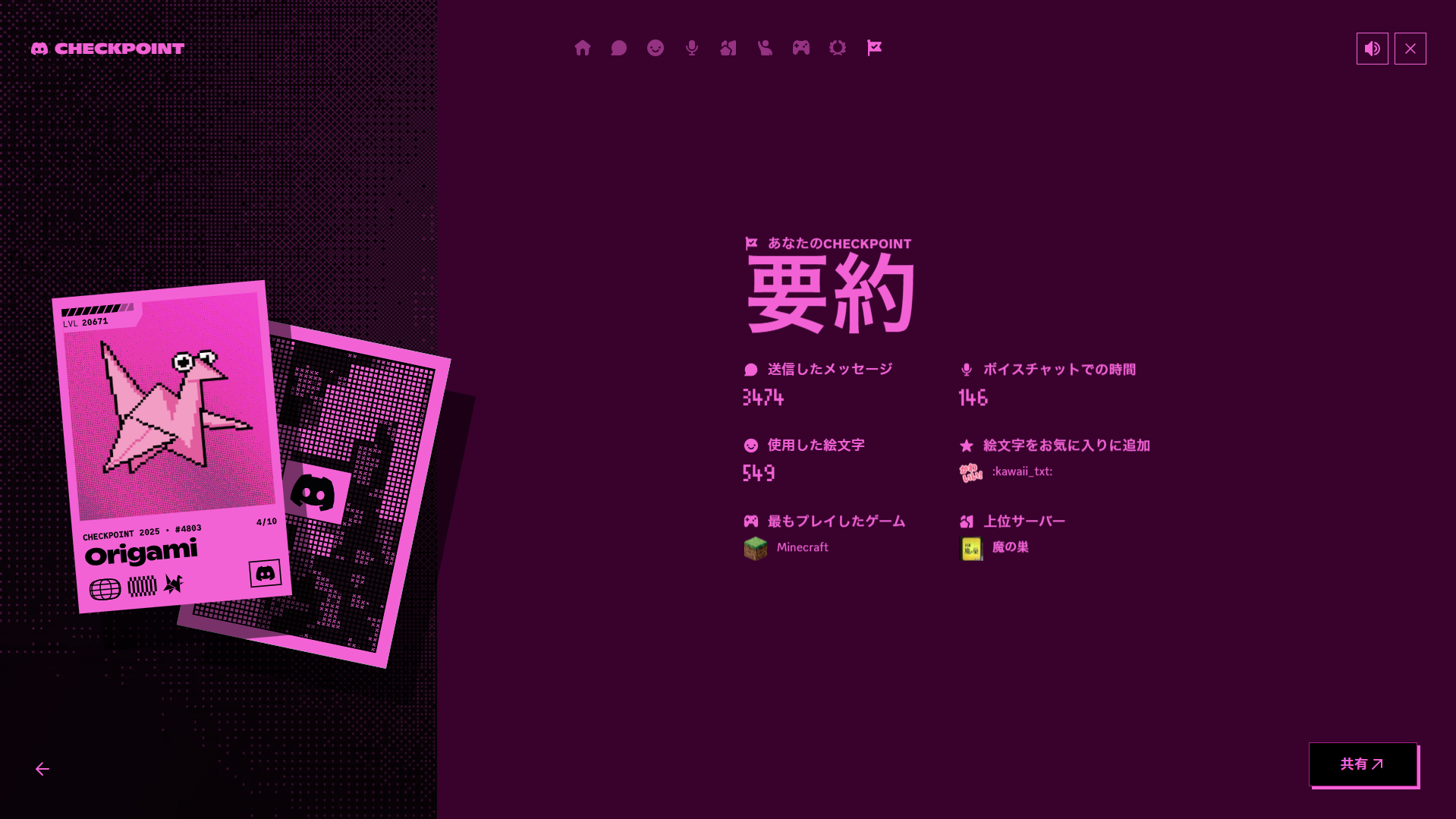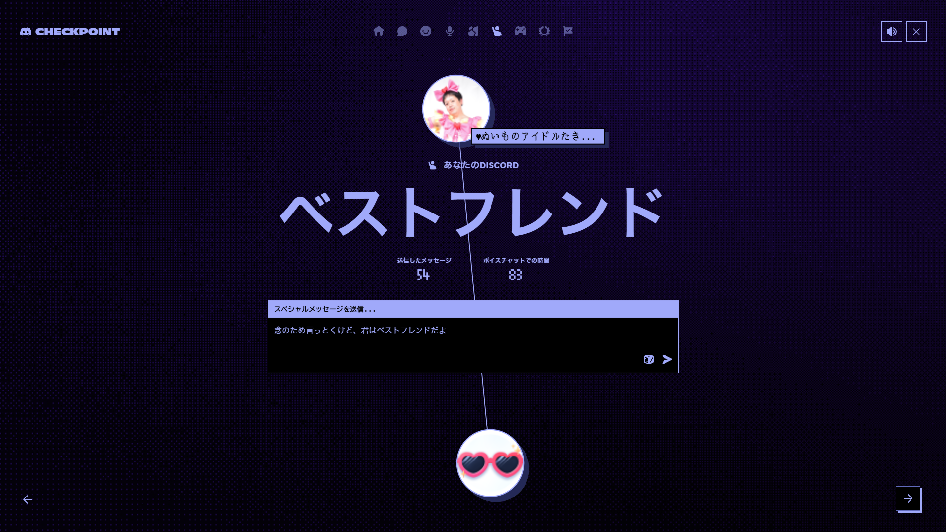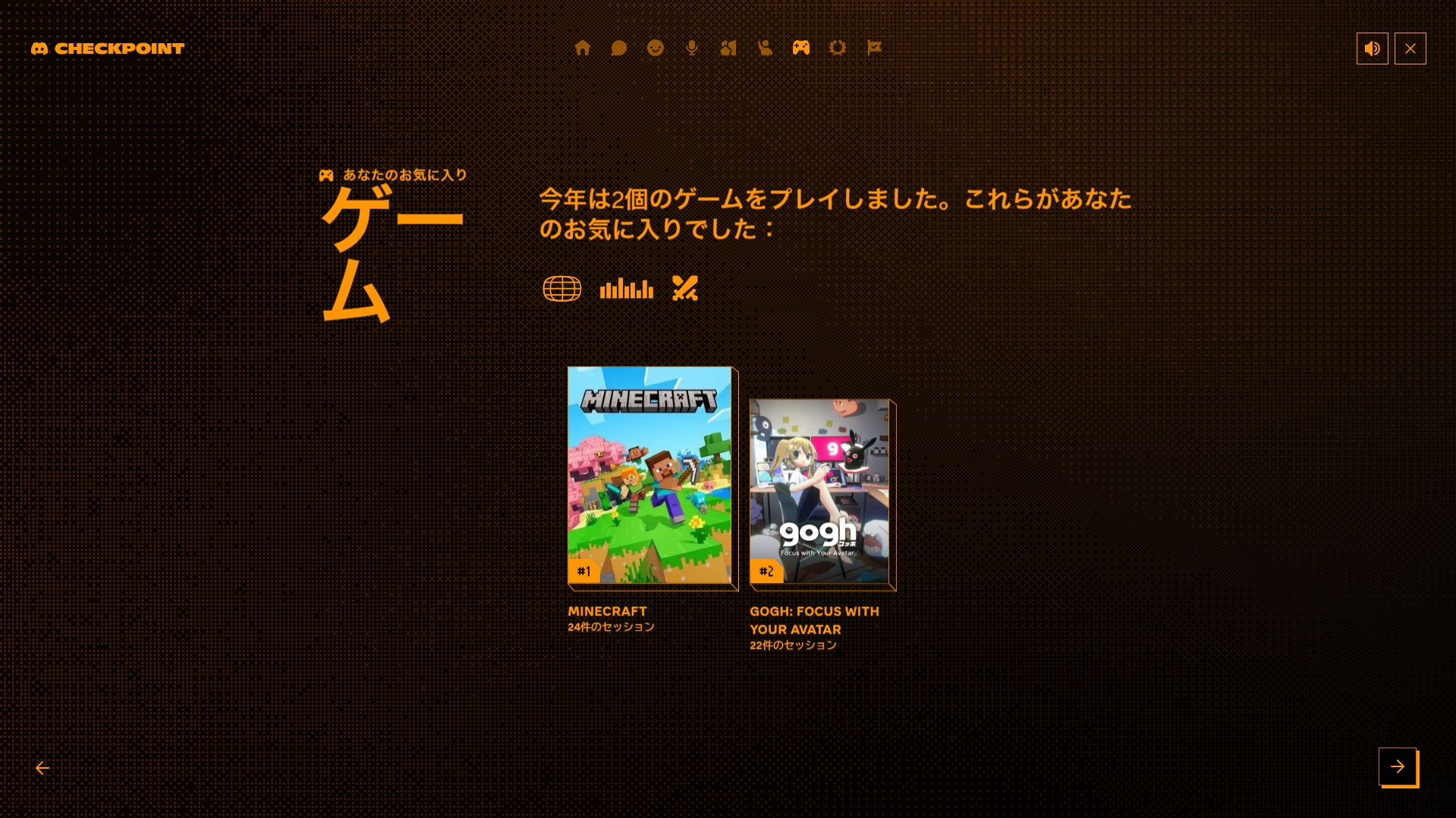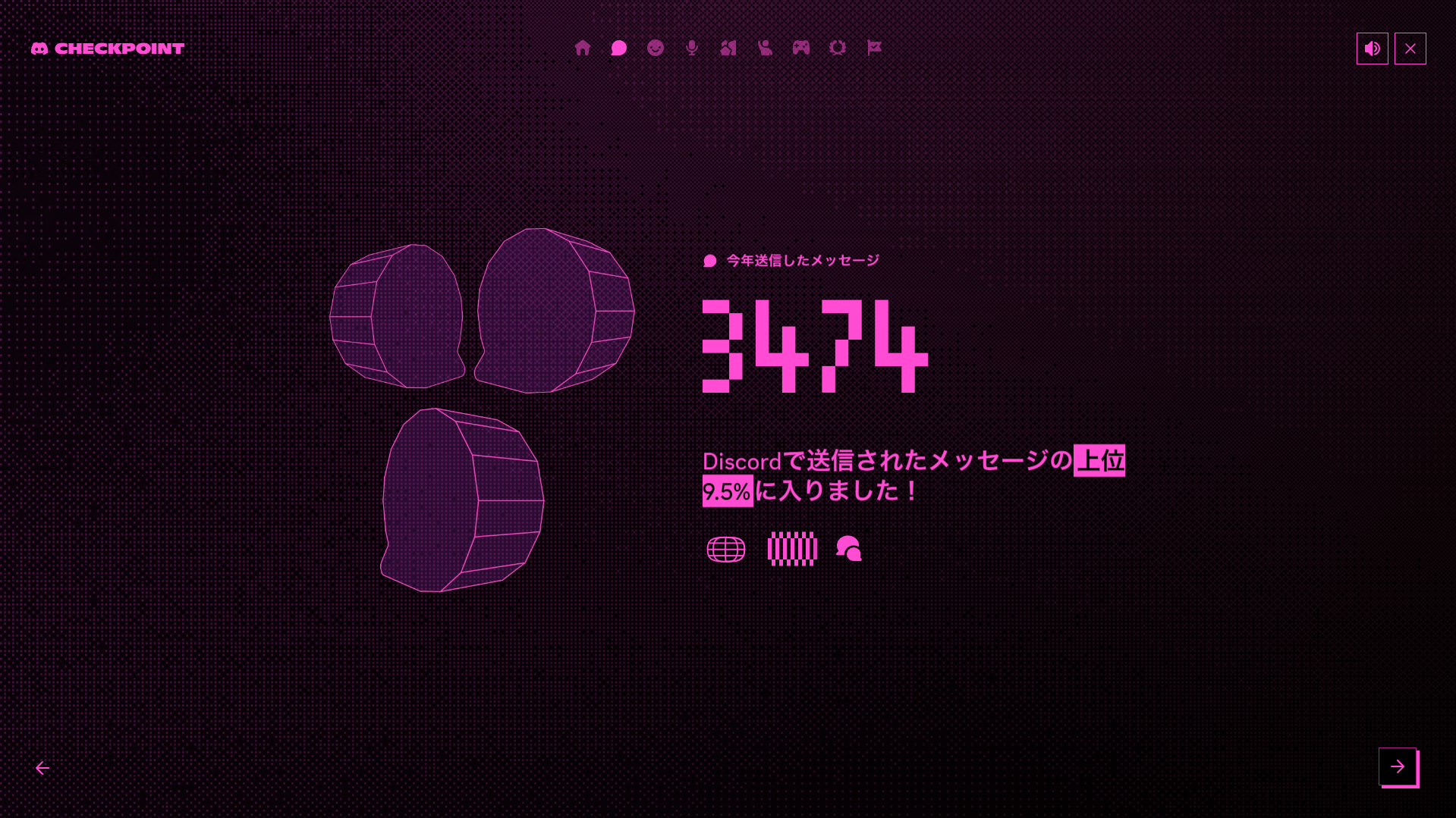 - TOPとは違って、アイコンの各要素は変わってはいるけど四隅配置は変わらず、左上のアイコンは「CHECKPOINT」のアイコンに変わってる