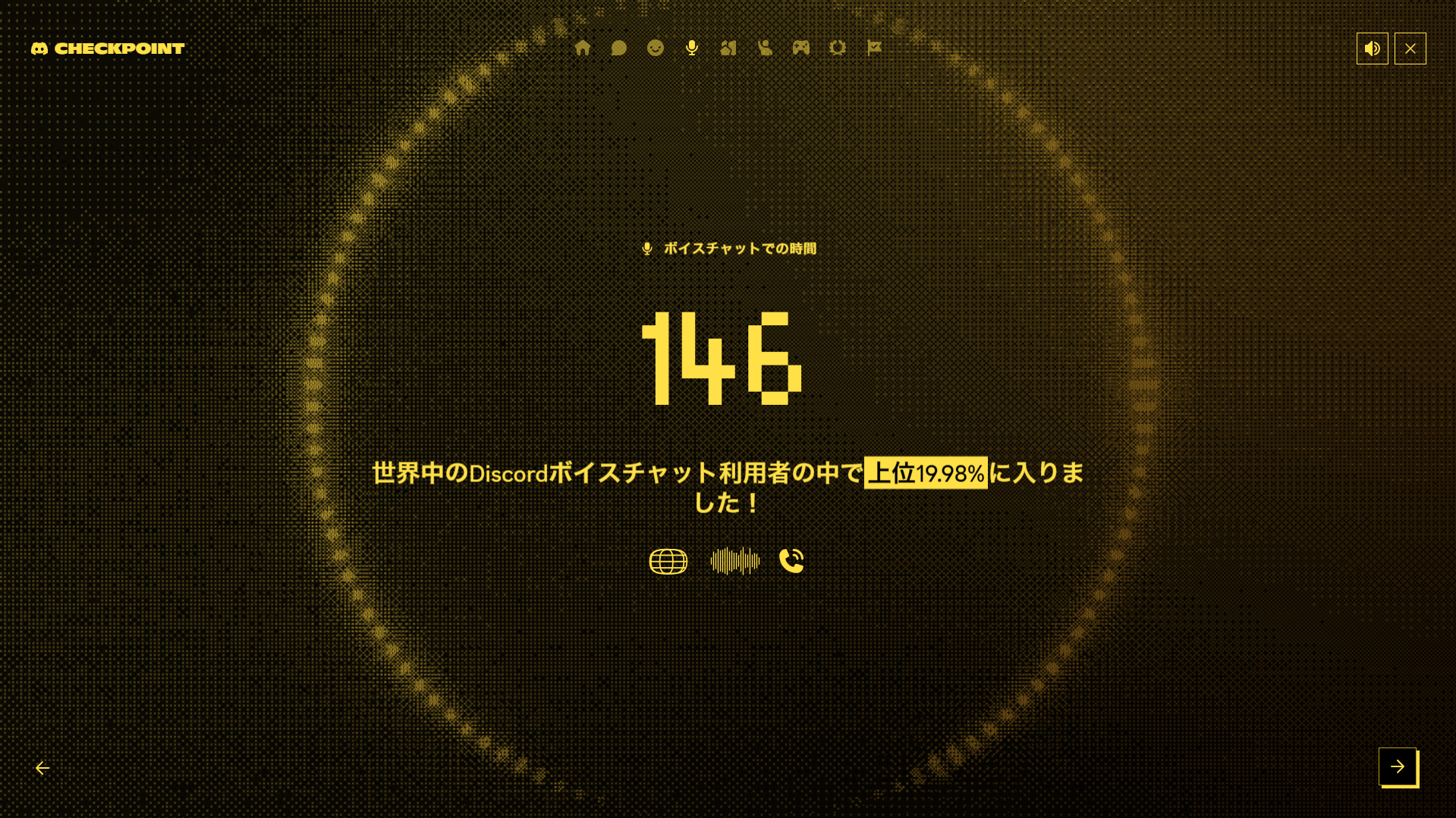 - 次は黄色、ここはボイスチャットの時間についてのコンテンツなので、背景は音声の波形を表す物が円形に動いてる。画面全体に効く背景なのですごく良い配置