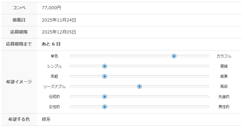 ・納得するデザインを頂けた場合、早期に締め切る場合があります。