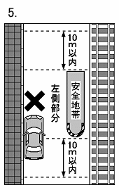 - 横断歩道や自転車横断帯と、その端から前後5m以内の場所(前後ね、手前だけじゃないよ)