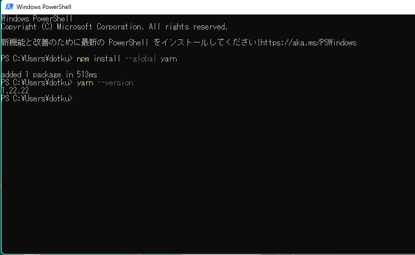 まず「yarn」っていうパッケージマネージャを導入